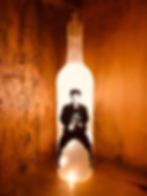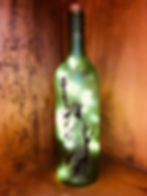 Beautiful up-cycled glass bottles, coated in a light spray frosting and a vinyl art design and warm white LED lights.
